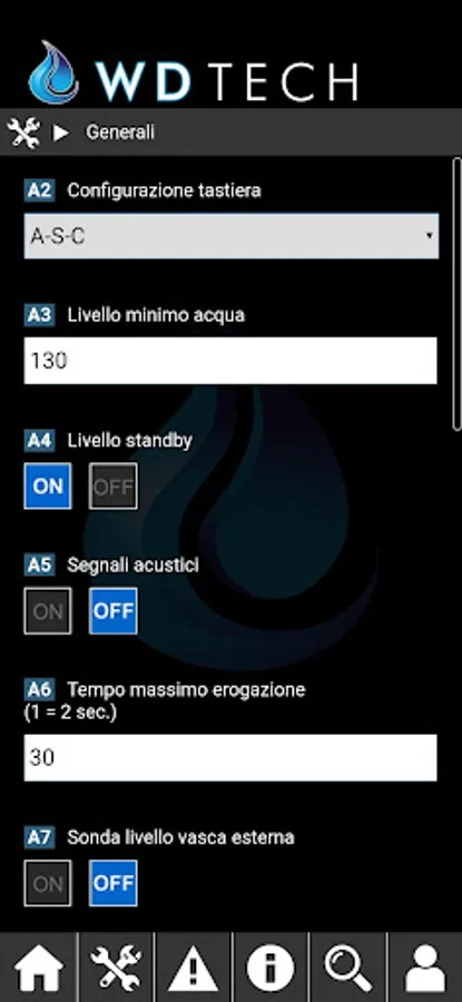 The App allows you to manage the Water Dispensers and change their operating parameters directly from the Smartphone.