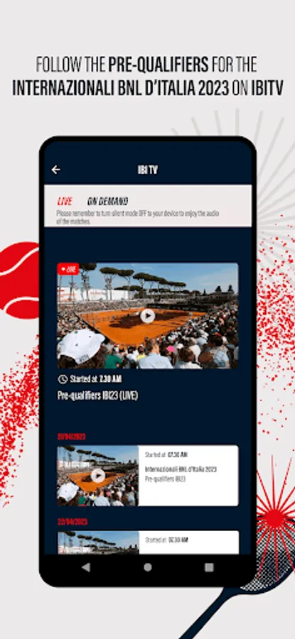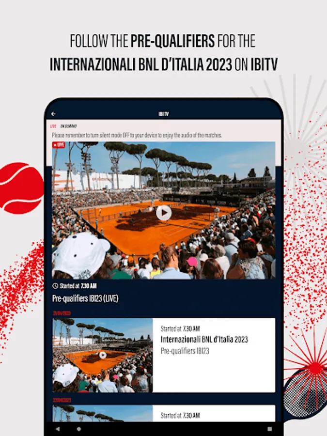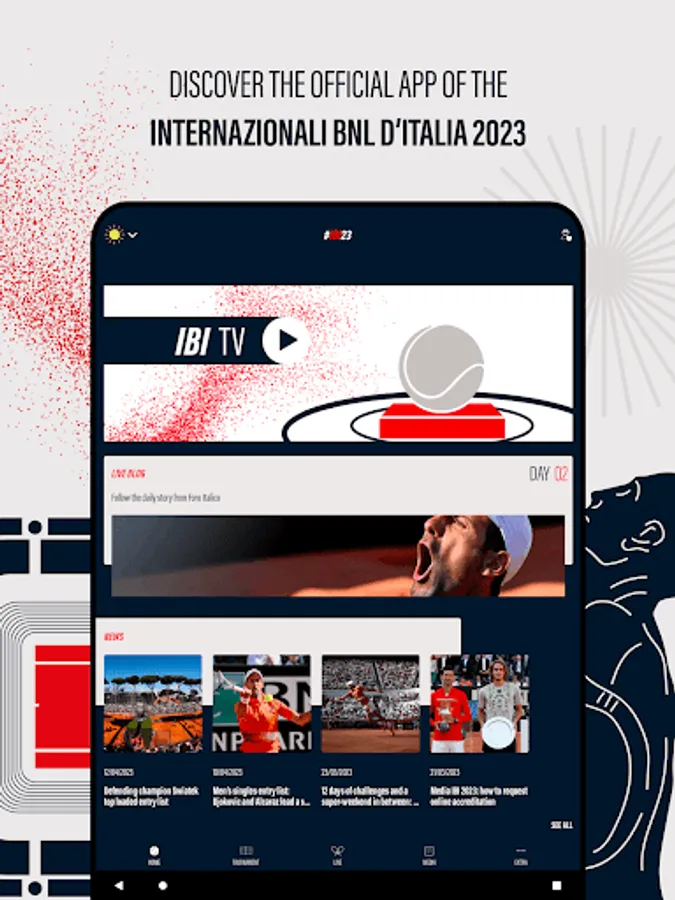 IBI23 is the official App of the 79th edition of the Internazionali BNL d’Italia, the most important Italian male and female Tournament of tennis. The event will take place from the 2nd to the 21st of May 2023.