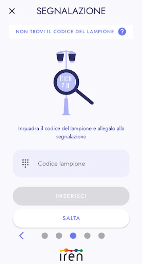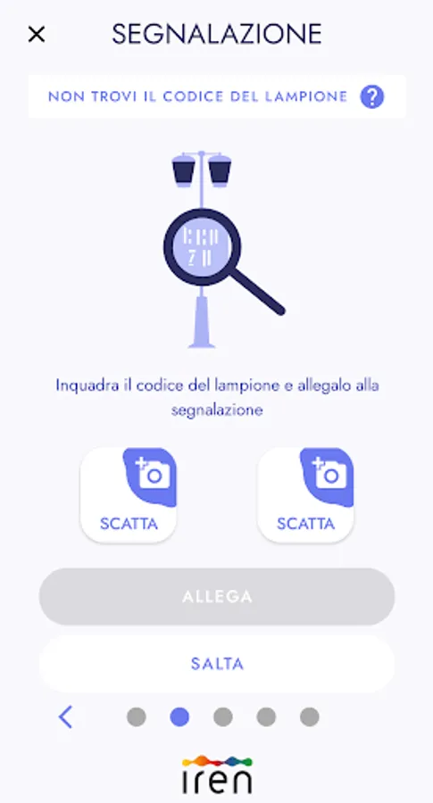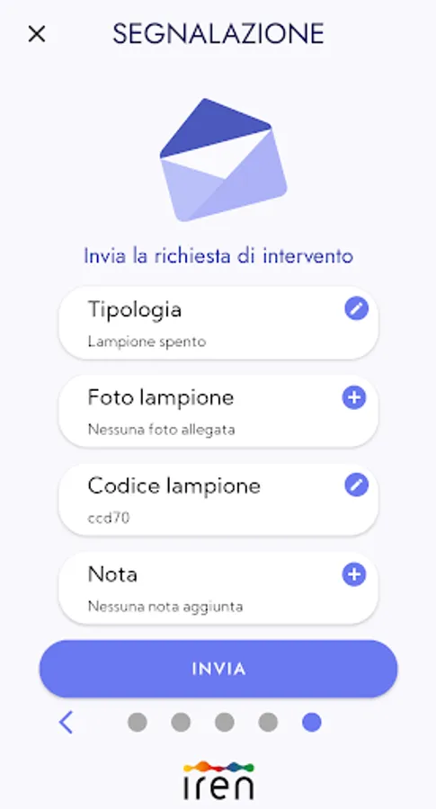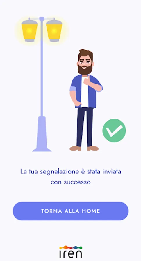 With just a few clicks the application allows you to take a picture and / or to report the code of the lamp that is off or not working, automatically geolocating the area concerned. The communication is then sent instantly to IREN, thus speeding up the lighting repsritino.