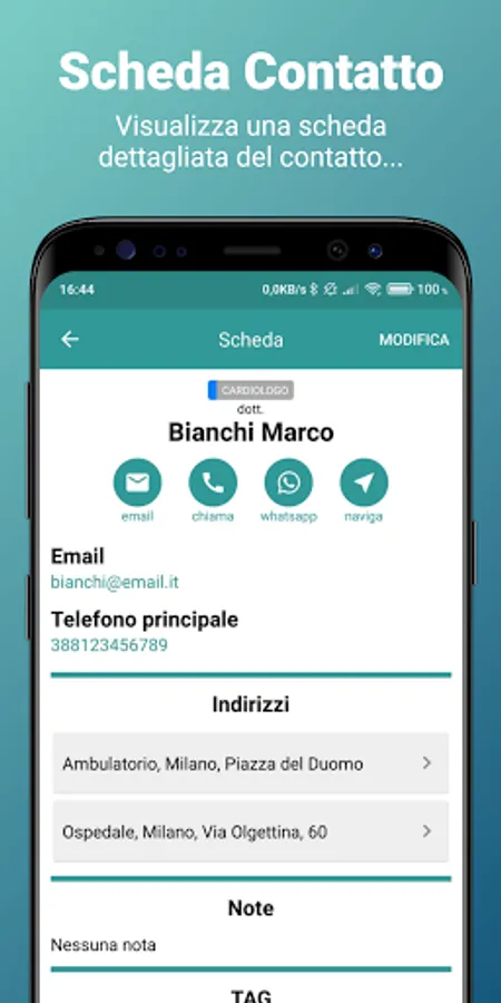 ✓ manage TAGs, assigning a name and a color, for better categorization of contacts in the address book;