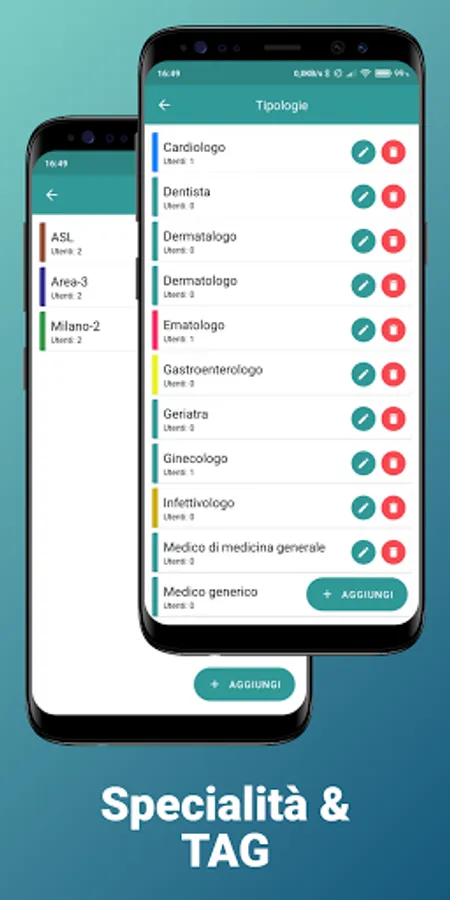 ✓ manage medical specialties for better cataloging of contacts in the address book;
