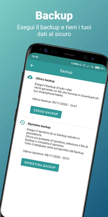 ✓ visualization and use of the app also in "horizontal screen" mode (LANDSCAPE);