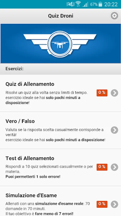 Quiz exam for the newly established by ENAC license for obtaining the certificate to pilot drones