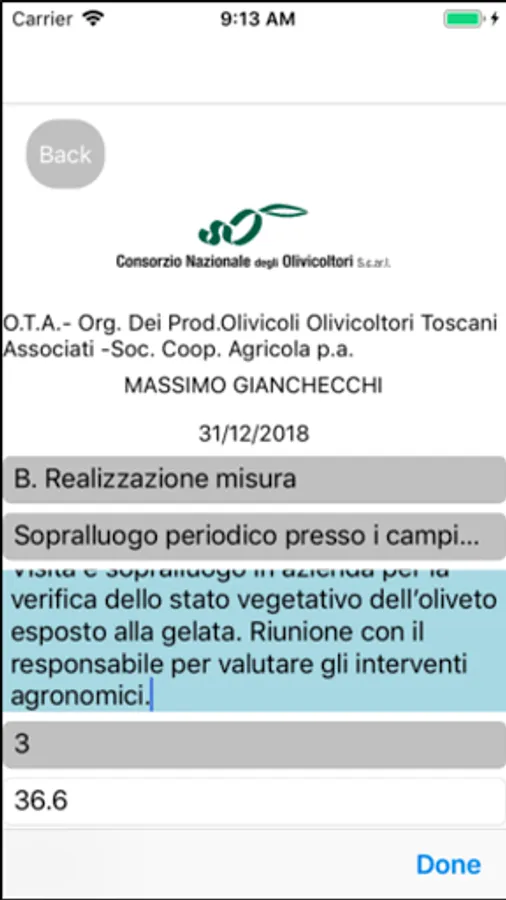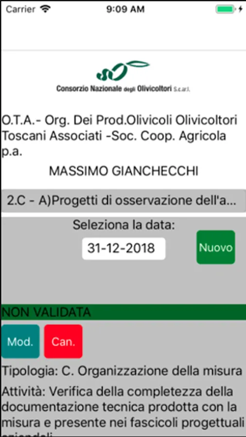 Management via APP of the diary of daily activities (www.epignosys.com) as part of the OCM Olio programs pursuant to EU Reg. 611 and 615 2014