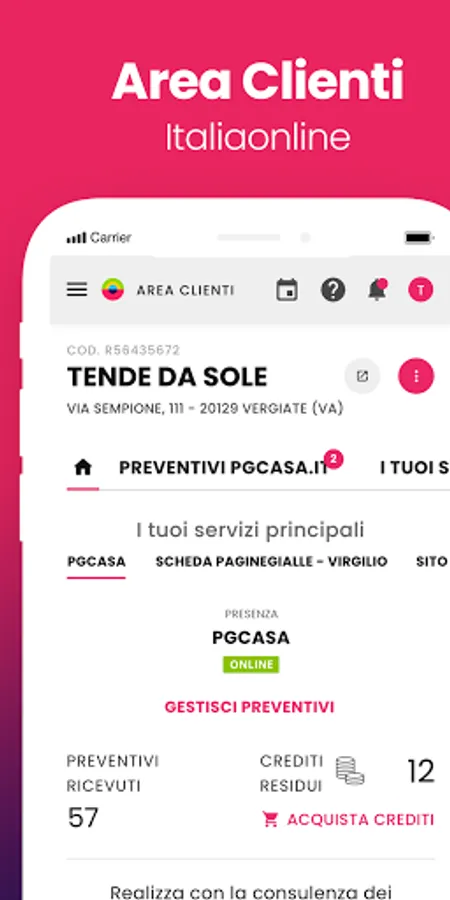 Italiaonline is the app dedicated to Italiaonline customers. It allows you to access your customer area and manage your communication plan in just a few clicks: