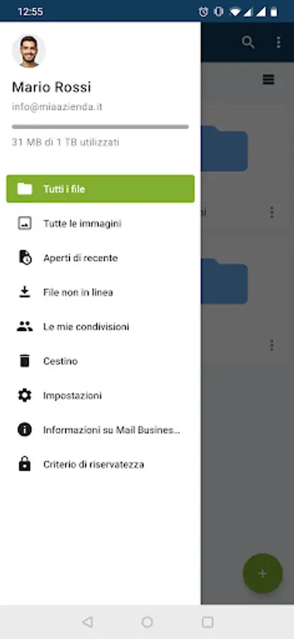 Mail Business Drive allows you to save, organize files on your cloud and share them with whoever you want at any time. Documents of all kinds, photos, videos are protected and synchronized on your drive in every device: smartphone, PC and tablet. The convenience of the Mail Business Drive app allows you to have access to files in the cloud at any time and from anywhere, so you always have the documents you need for your business with you.