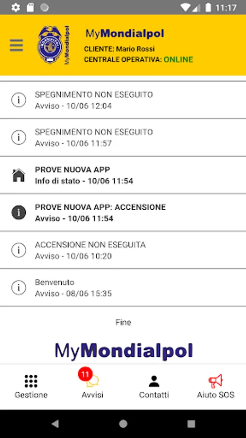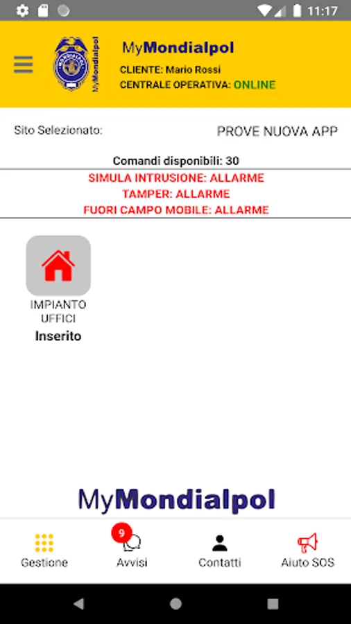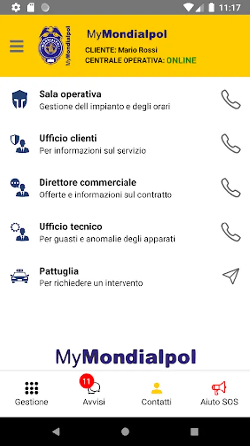In the event of an emergency, the App has the SOS Panic Alarm button: the command immediately transmits a report to the Mondialpol Operations Center which, by detecting the GPS coordinates, sends the nearest police forces to the site.