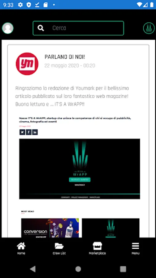 It's a WrApp is a social network web service mainly used in the development of professional contacts for operators and companies working in the world of ADVERTISING - CINEMA - PHOTOS - EVENTS.