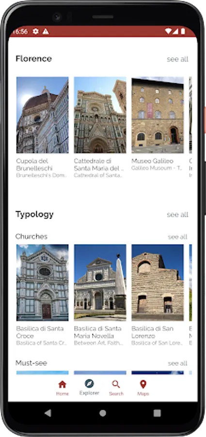 Discover points of interest through the exploration page and find them organized by type or common features.