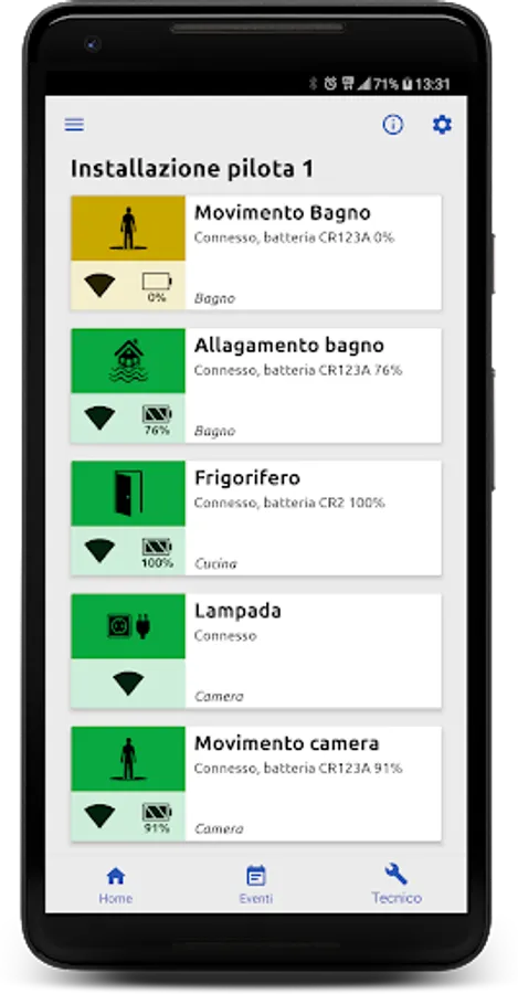 The WiMHome app allows you to continuously monitor a domestic environment, providing information on the regularity of the activities of the person who lives it and promptly reporting anomalies (bed left, possible fall, distress call, escape from the apartment, etc.).