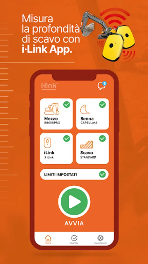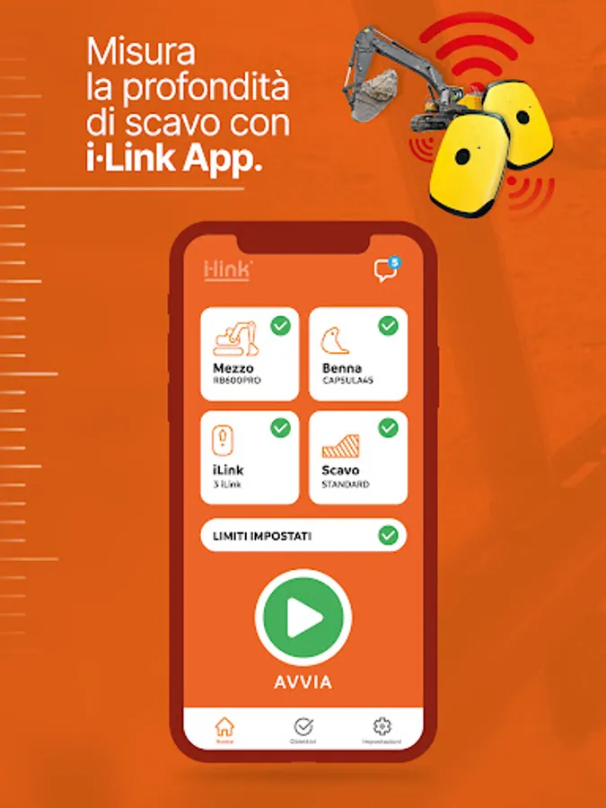 iLink device is the App that, associated with your devices, allows you to receive information on the excavation depth of an earth-moving machine in real time.