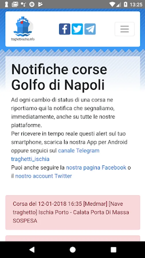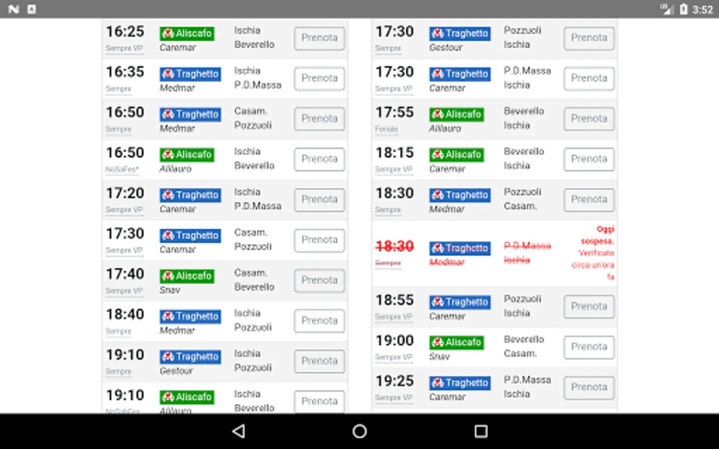 Real-time notification suspended strokes of the major shipping lines operating to and from Ischia and some other races in the Gulf of Naples.