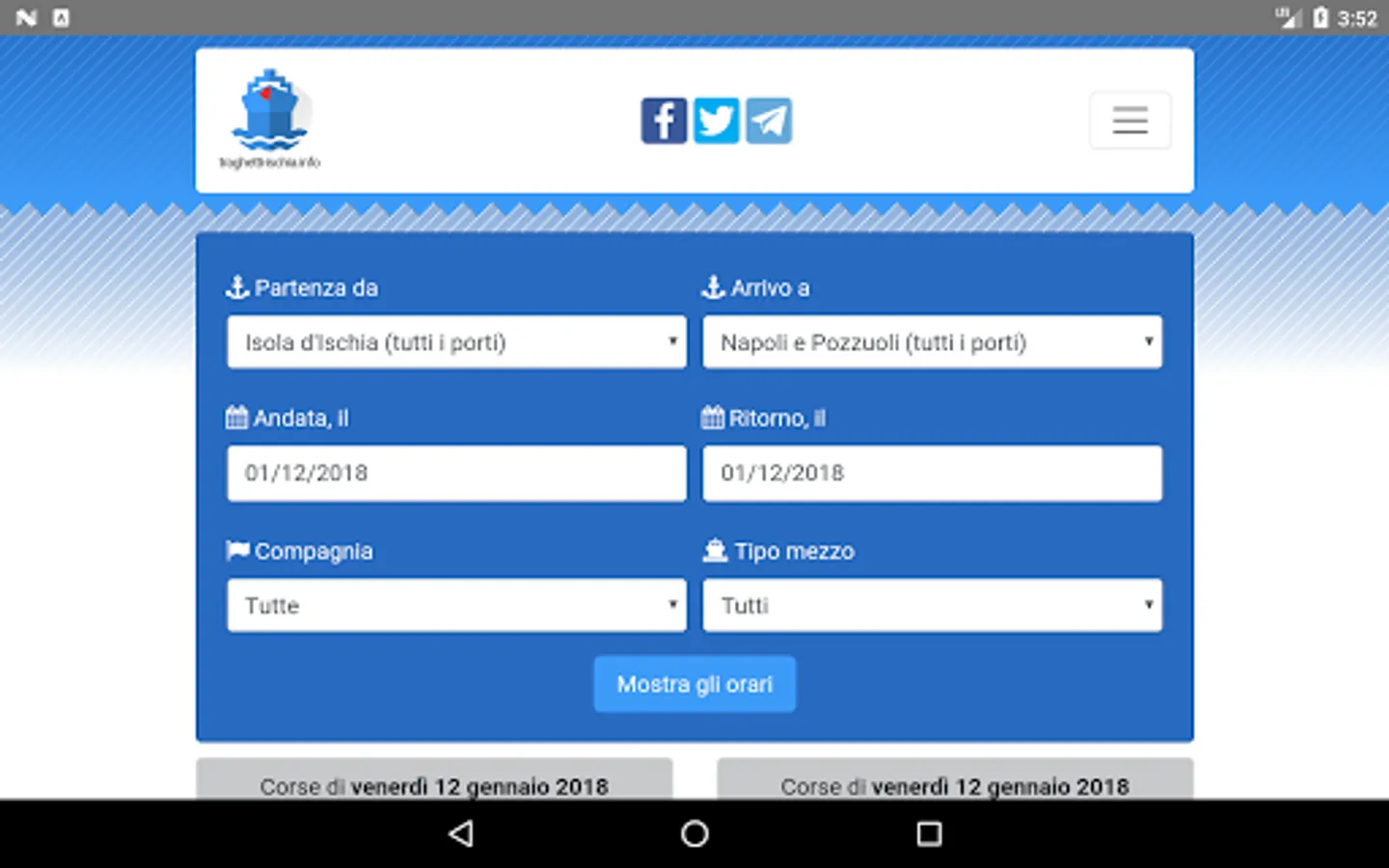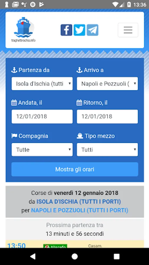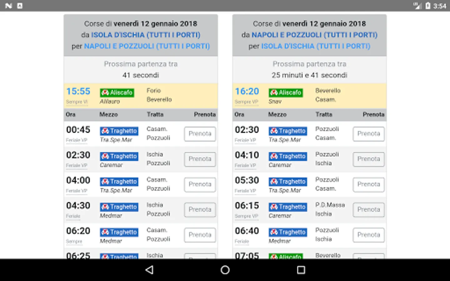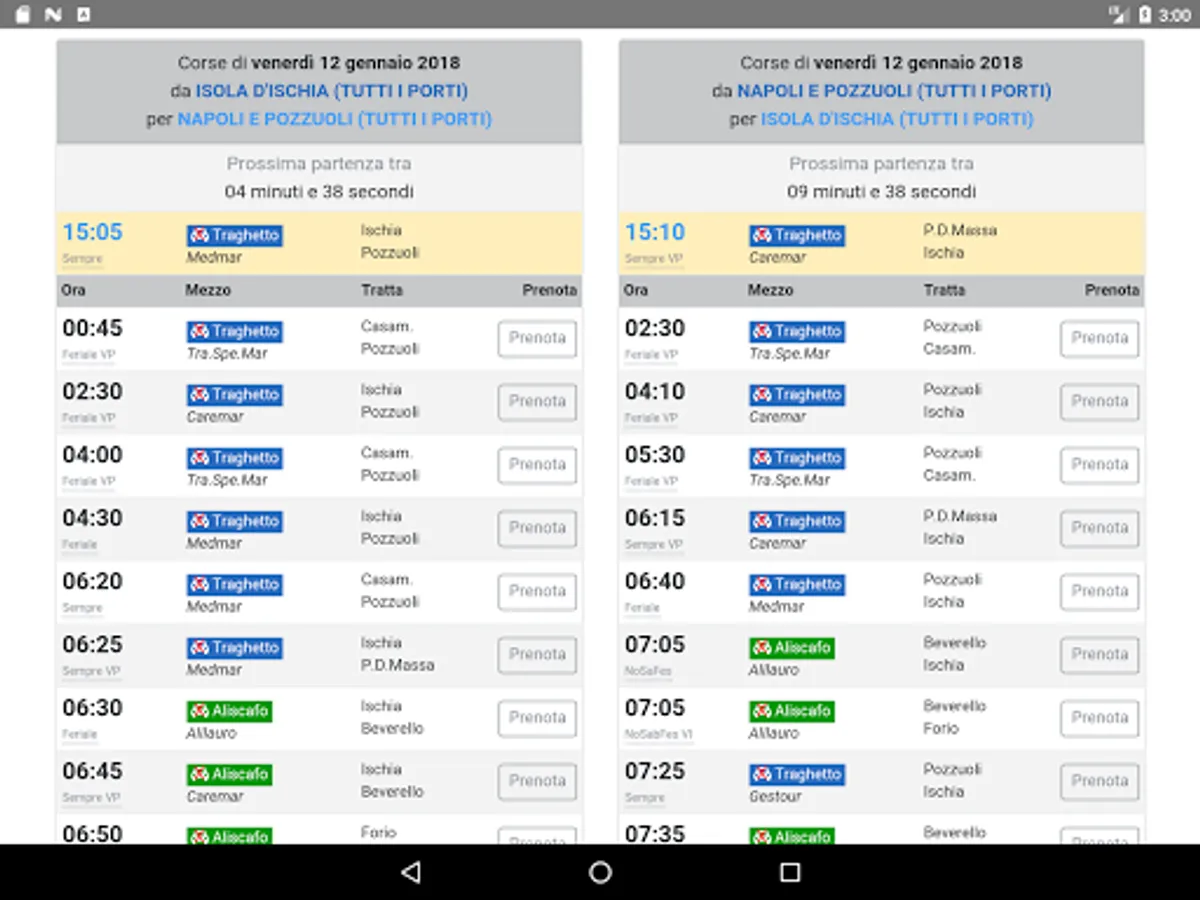 Resets all the updated schedule of ferry connections to and from the Island of Ischia and surrounding areas, with the possibility to book directly from the application.