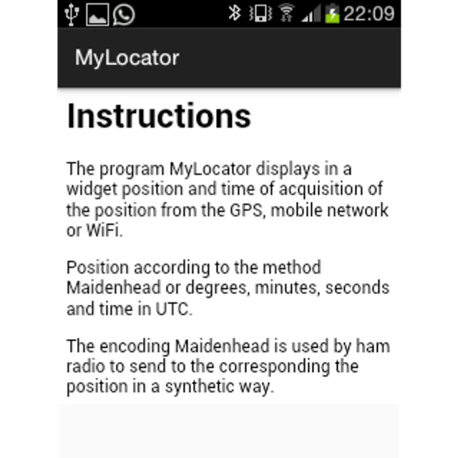 The program MyLocator displays in a widget position and time of acquisition of the position from the GPS, mobile network or WiFi.