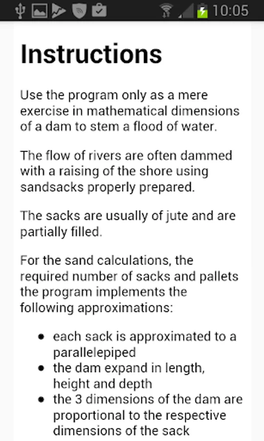 Use the program only as a mere exercise in mathematical dimensions of a dam to stem a flood of water.