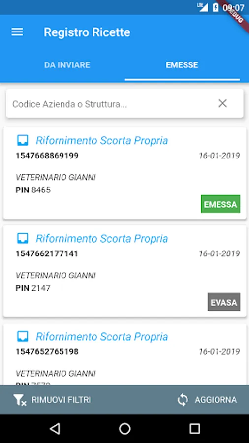 The app is the natural extension, for mobile devices, of the functions of emission, access and consultation of the electronic veterinary recipes present in the web application for the digitalization of the management of the handling of veterinary medicines. It allows all the authorized subjects to issue directly on the farm, even in the absence of internet connectivity, the electronic veterinary recipes and other authorized subjects (keepers, breeders or their delegates) to view, consult and share with their pharmacy / wholesaler their electronic veterinary recipes.