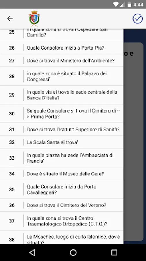This app allows you to perform the exercises to address the role of examination enrollment drivers of the province of Rome, which would otherwise be undertaken on paper. The questions are divided into four thematic areas.
