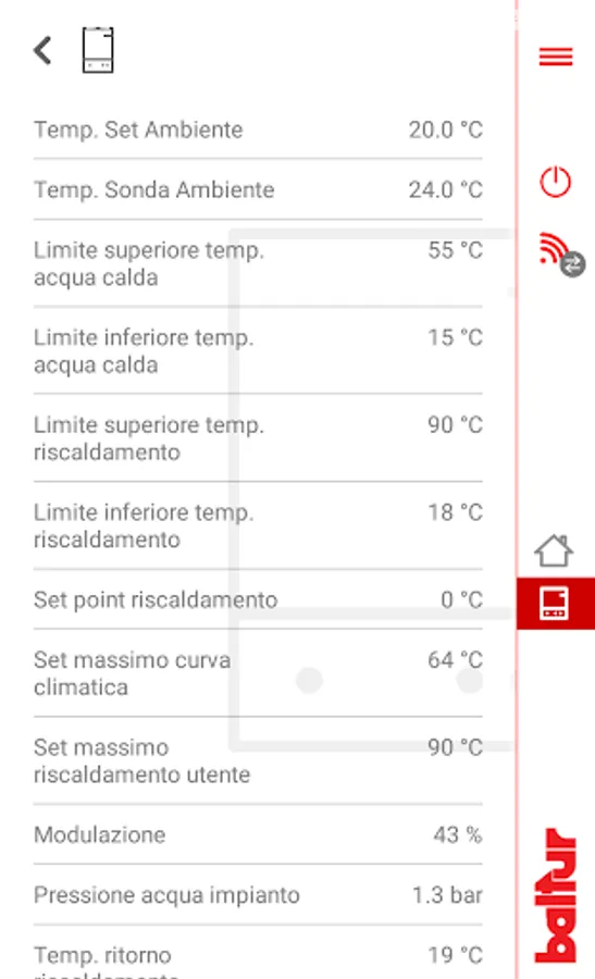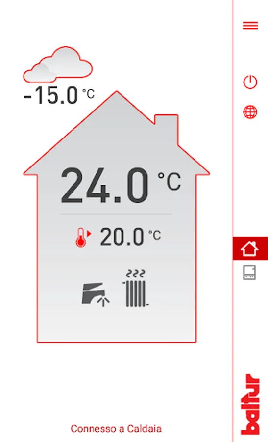 This application, together with My Baltur APP kit, must be combined with Baltur remote control with climatic regulator. With just one APP you can monitor one or more homes.