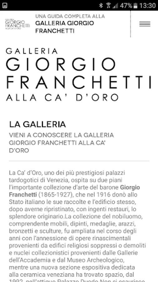 Official App, with interactive tours, of the Galleria Giorgio Franceschetti in Ca' D'oro