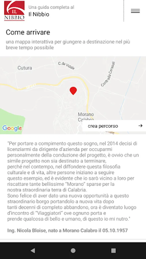 Official app, with interactive guides, of the diffused hotel "il Nibbio" and its cultural complex with Museums, Exhibitions and Events.