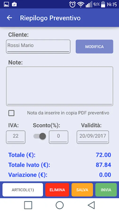 They can also send the quote via email to the customer you will also have already its acceptance and then attend so fast and simplified the negotiation and conclusion of commercial part that is usually overlooked or performed or however with a very long time.