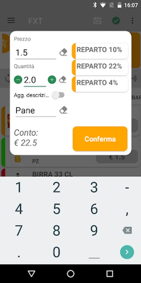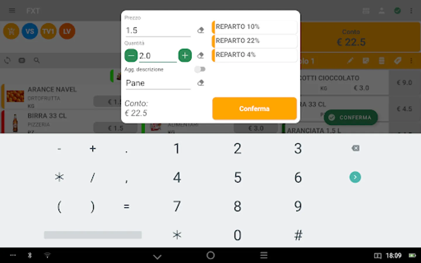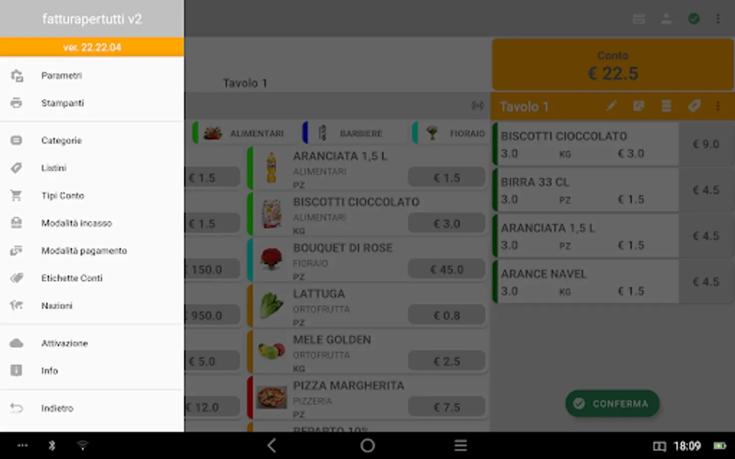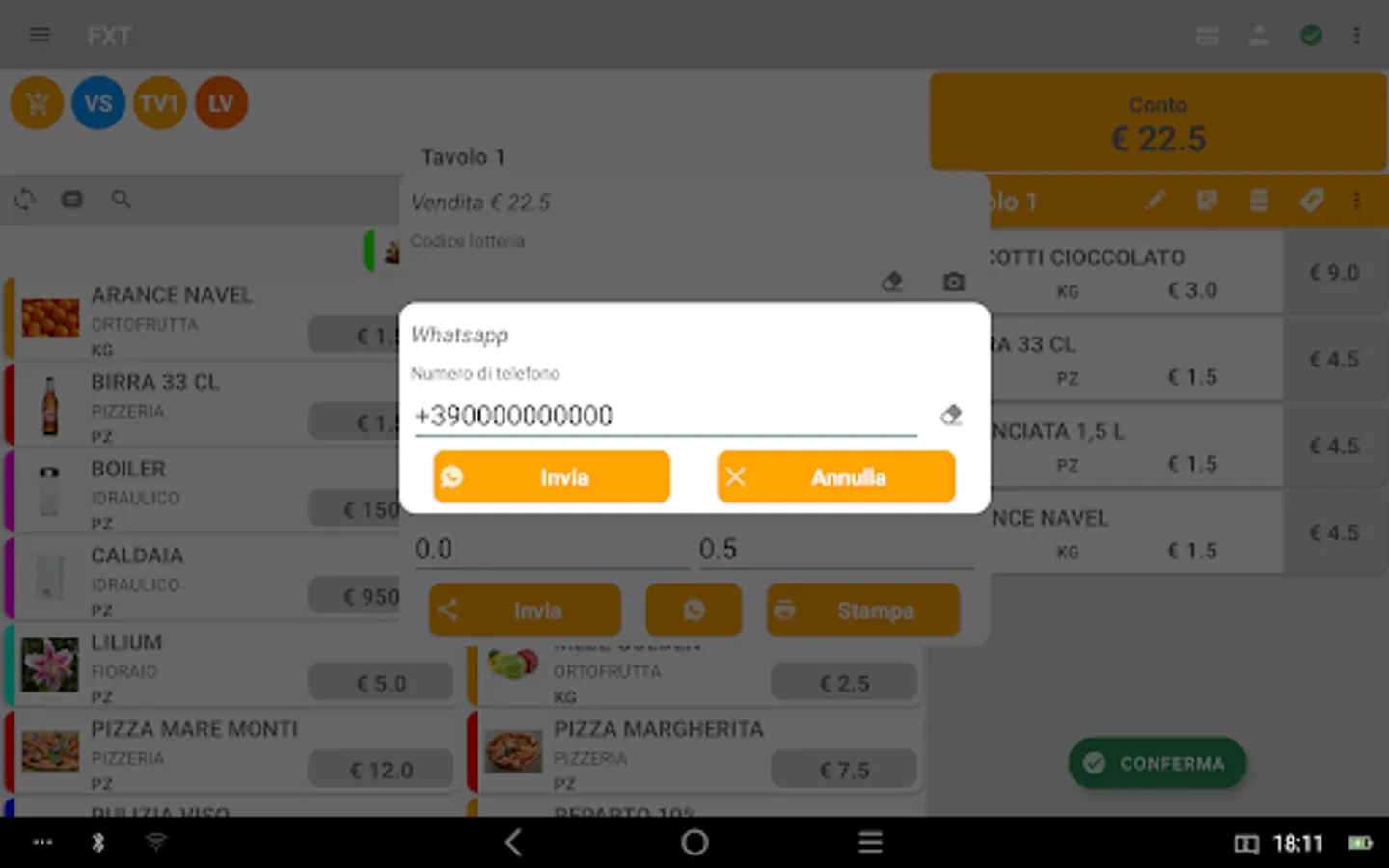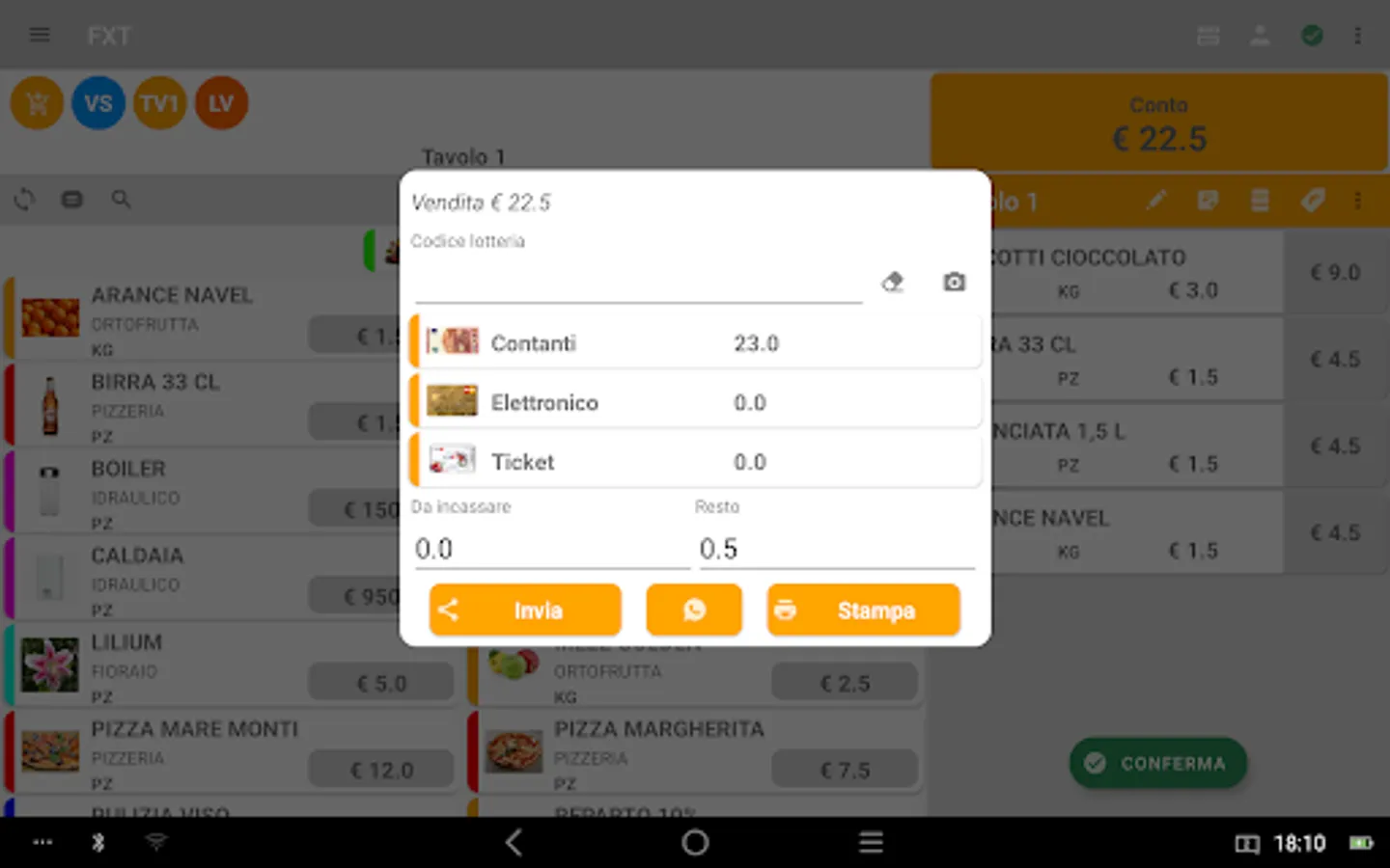 Commercial documents (receipts - tax receipts) without cash register, pre-account, departments, estimates, vouchers, technical interventions, orders, transport documents, immediate and deferred electronic invoices (to individuals and public administrations), electronic purchase invoices, NSO orders, sectional, operator management and peripheral offices, customers and suppliers directory, product and service data, price lists, bar codes (even with the use of the camera), agents, technicians, sending documents by e-mail - WhatsApp etc., reports and statistics on your business, electronic storage and thousands of other functions.
