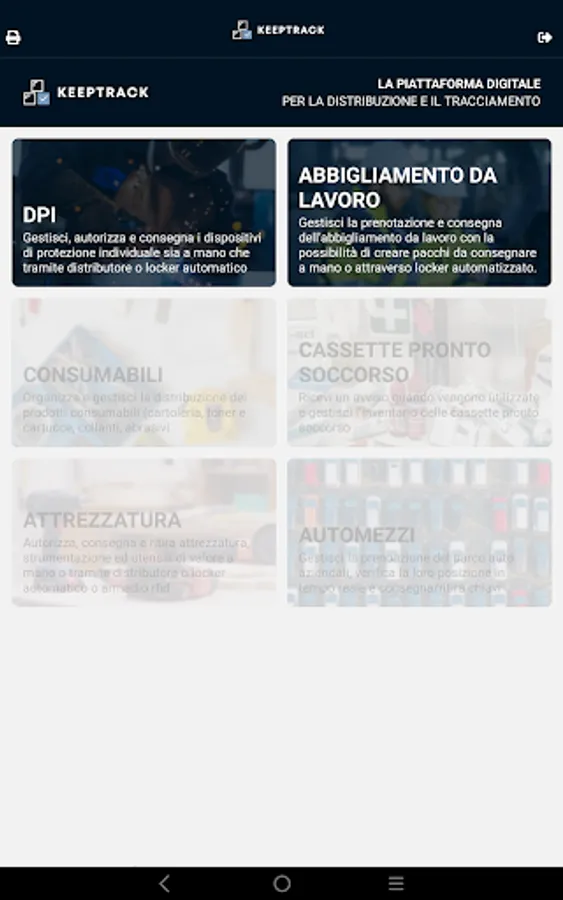 It works after identification of the personnel, it guarantees certification and traceability of the collection and return, it works through the use of special vending machines or lockers, but also, where it is not possible, through hand delivery traced thanks to the use of this app.