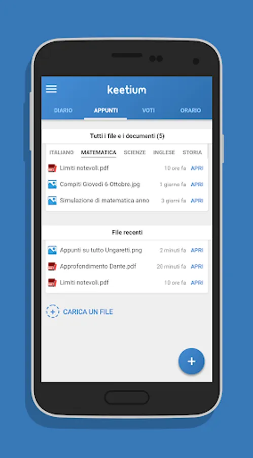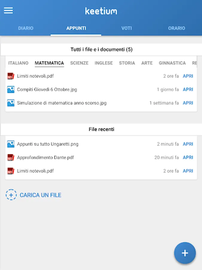 - Consult and upload class notes and documents in any format (visible to the class or private)