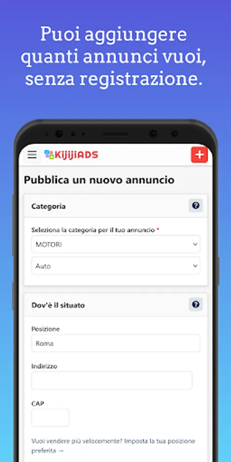 Kijijiads.it is a free service: the publication and reading of ads is, and will always be, free.