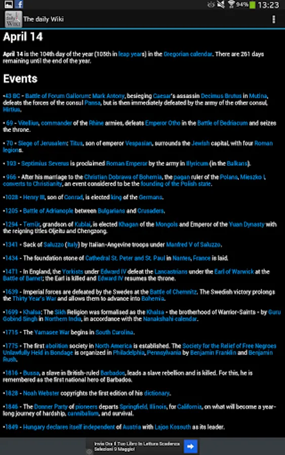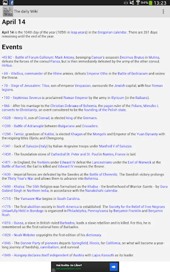 History Today - The Daily Wiki allows you to know what happened on this day throughout history.