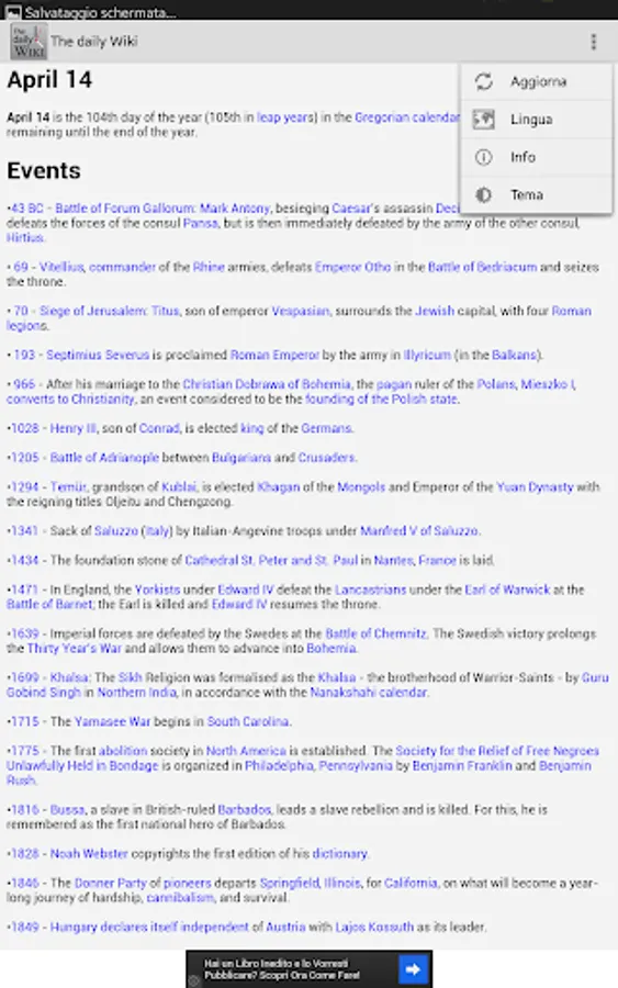 You can read what happened on this day in English, Italian, French, Spanish, Portuguese, German and Dutch.