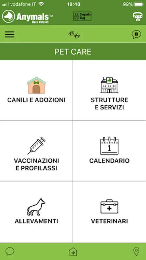 The pet care section of Animals includes a series of utilities and functions to manage your pet's daily life. It is a very broad section because it includes the following areas: