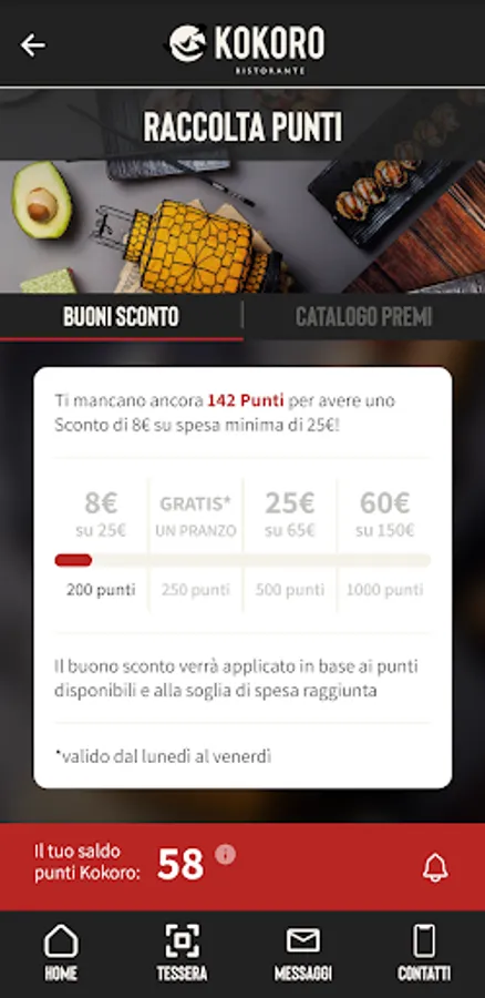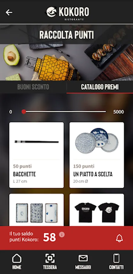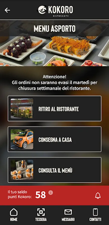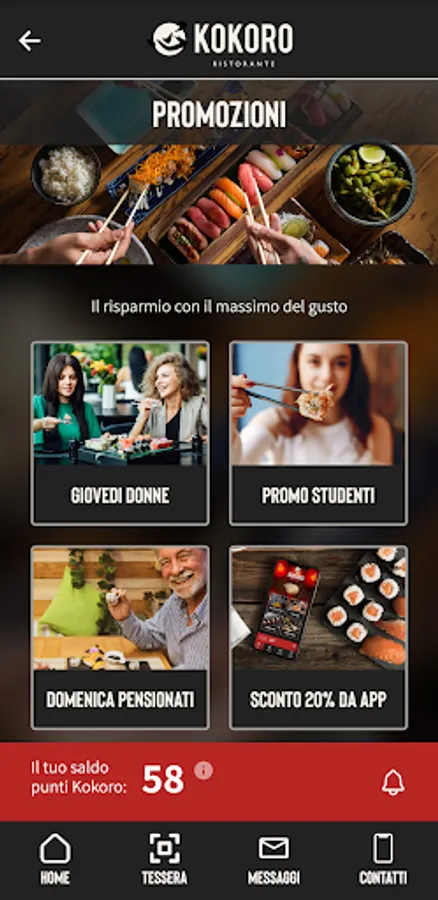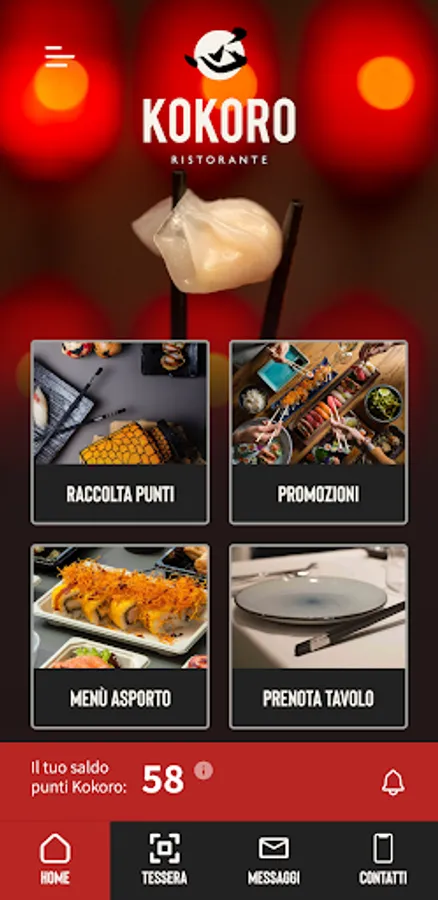 - Digital card. Come and visit us in our restaurant, at every lunch or dinner show your personal code and earn Kokoro Points.