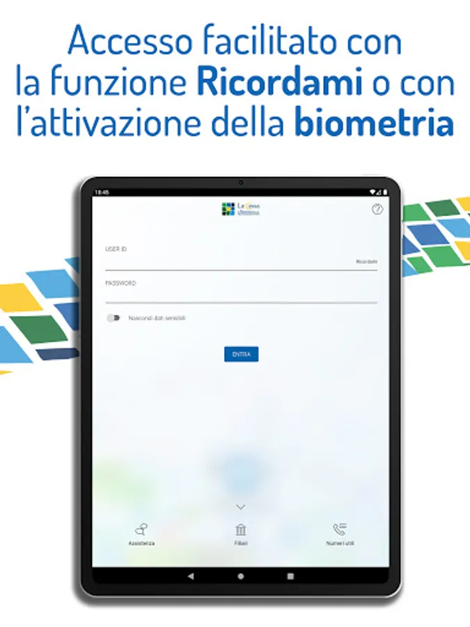 Free and accessible by La Cassa customers, with the new APP you can access simply through biometric recognition or, if you prefer, using the "Remember me" function.