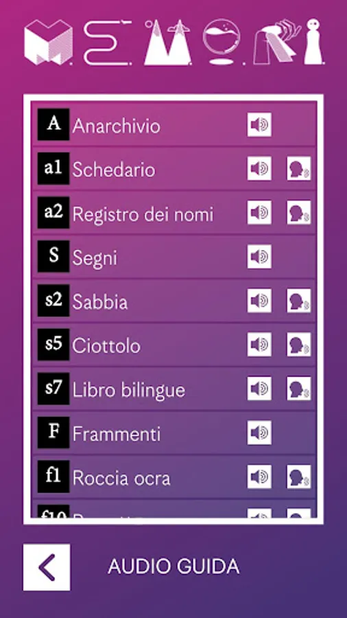 The MEMORABILIA Application enriches the use of M.E.M.O.RI. with the audio guide in English and Italian, scientific insights, 3D animations and rhyming stories.