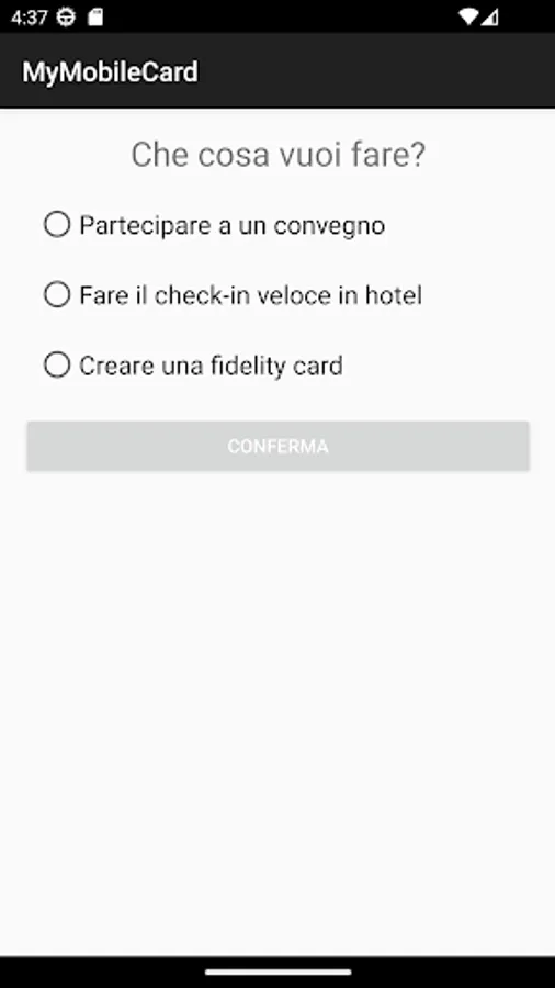 MyMobileCard is the app that allows the dematerialisation of a Fidelity Card by replacing it with an app containing a QR Code.