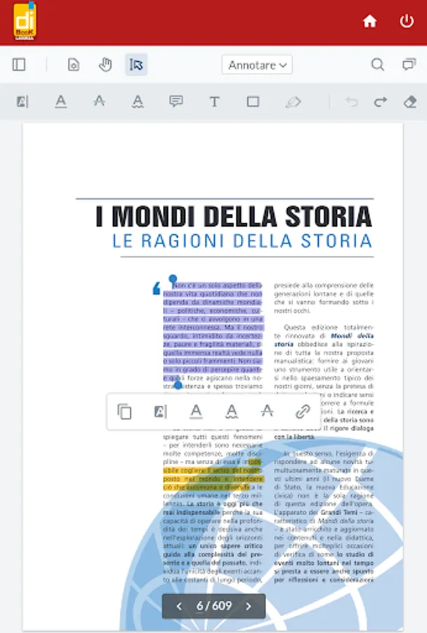 You can read your digital books and use all the features of your digital book in liquid format (ePub manuals) or in the new page format (LibroPLUS).