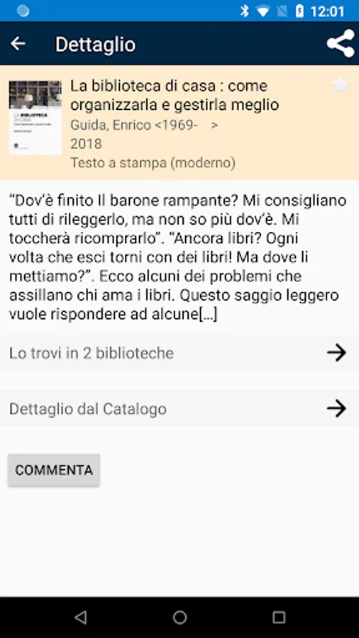 Through the BIBLIOLAZIO App you can do research either with the traditional keyboard typing or by voice search, dictating the title or keywords of the desired document. The search can also be done by reading the bar code (ISBN) by activating the scanner.