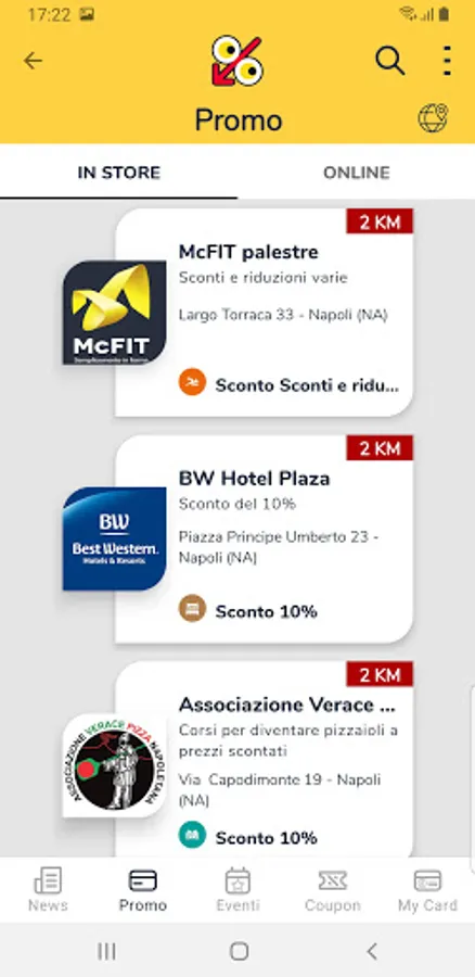 Download the App to discover, through a map or list, the opportunities close to you and show your digital card to get them.