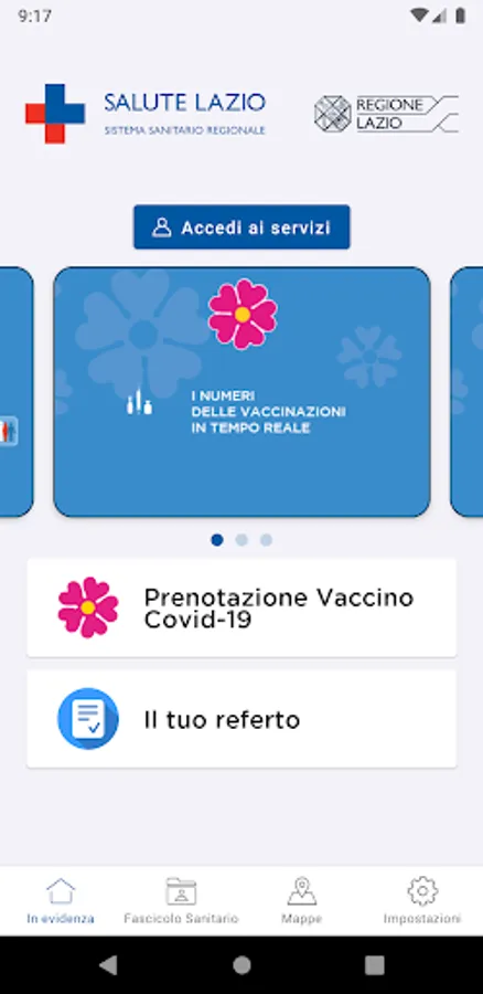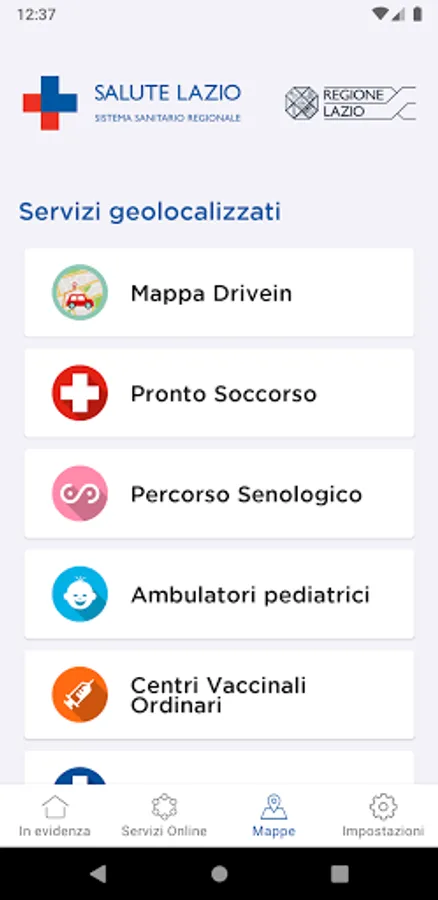 The SaluteLazio app allows you to consult in a geo-localized manner the structures in the Lazio Region closest to you: Drive In, First Aid, pediatric clinics, primary care clinics, vaccination centers, Health Homes, Medical Guard, Pharmacies (Rome and province ). It also monitors in real time all the emergency rooms and their turnout, indicating the least crowded one closest to you.