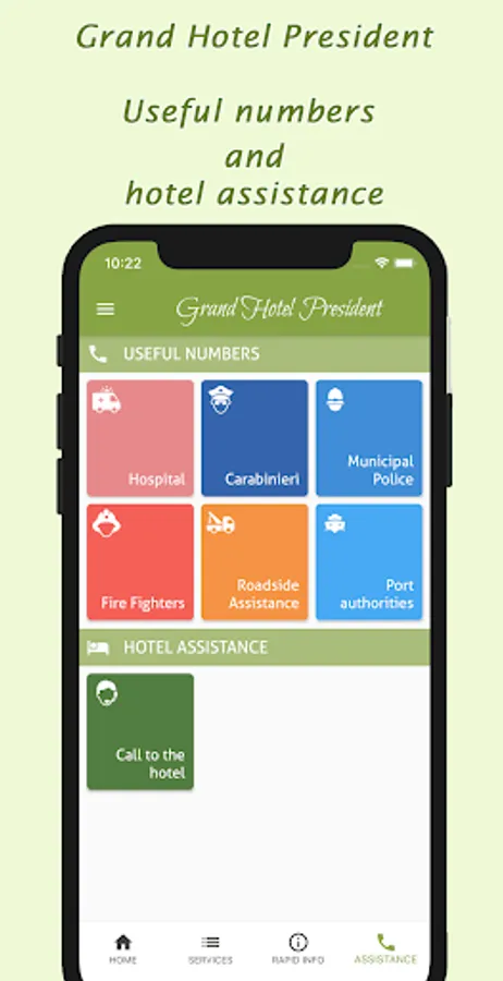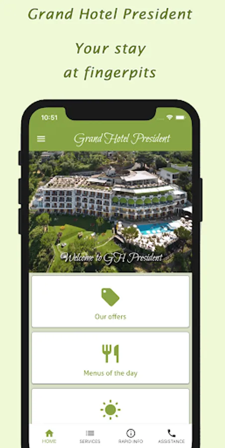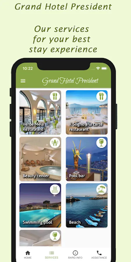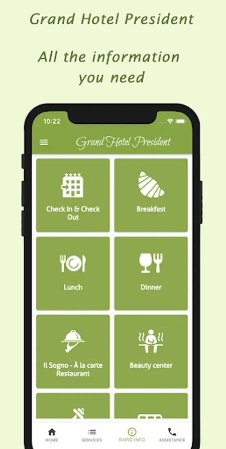 The Grand Hotel President's app offers a range of services for those staying at the hotel and also for those wishing to book a holiday at our facility.