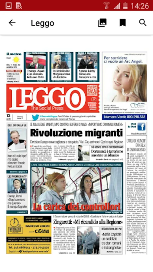 You can access the news of the newspaper to "read" - "Newsstand". The editions in Rome and Milan, which are available from the early hours of the morning not only online but also offline a downloaded times. You can access and view the attachments and the newspaper Special, browse the editions of the past 14 days and save them on your devices.