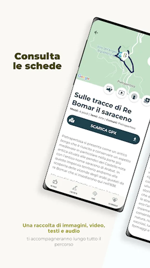 In the app you will find access to the most useful information, organized in a simple and effective way: you can search starting from the individual villages or you can directly choose the itineraries [on foot, by bike, by motorbike, by car, with public transport], you can search local productions and typical products or places to eat or sleep or characters and stories of the countries.