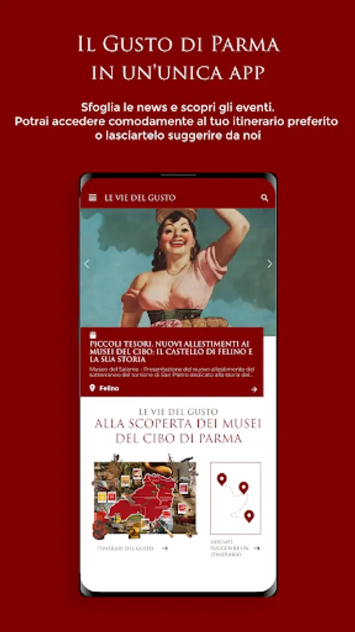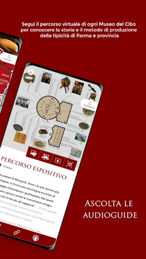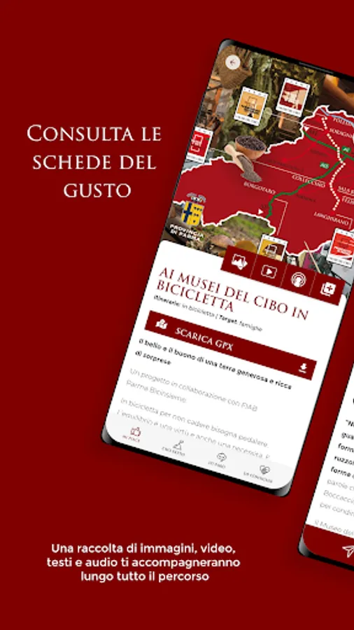 Parma and its province, in the heart of the Food Valley, host 9 museums dedicated to the local food and wine heritage. A journey rich in history and food culture that you can relive thanks to this interactive and multimedia app.
