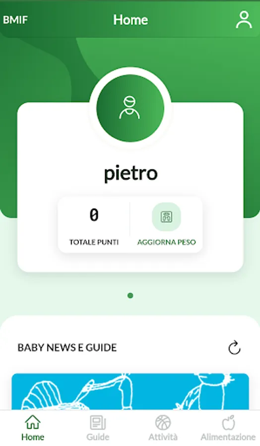 - Guides / News: anticipatory guides and news have been created with advice and information regarding the child and his growth.