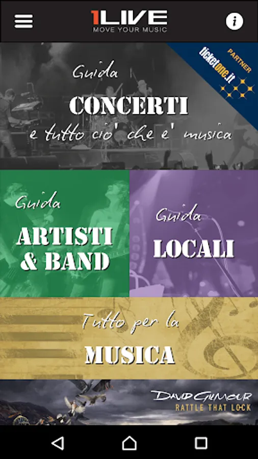 Guide Live Music 1LIVE is the reference app for live music in Italy.