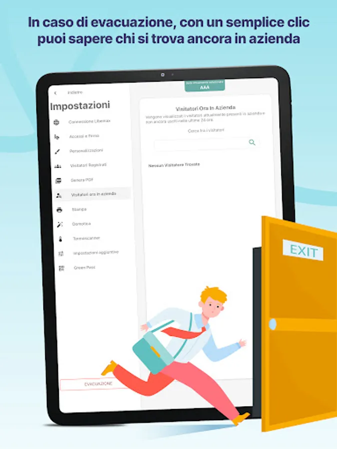 In case of fire and / or evacuation of the building with a click you can know who is still in the company.