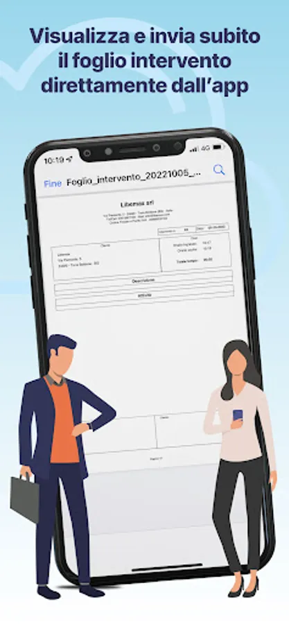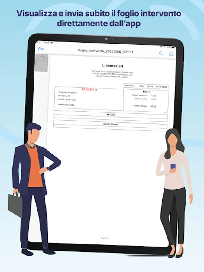 After stamping, you can view the intervention sheet to be sent to the customer by mail, whatsapp, ... or just print.