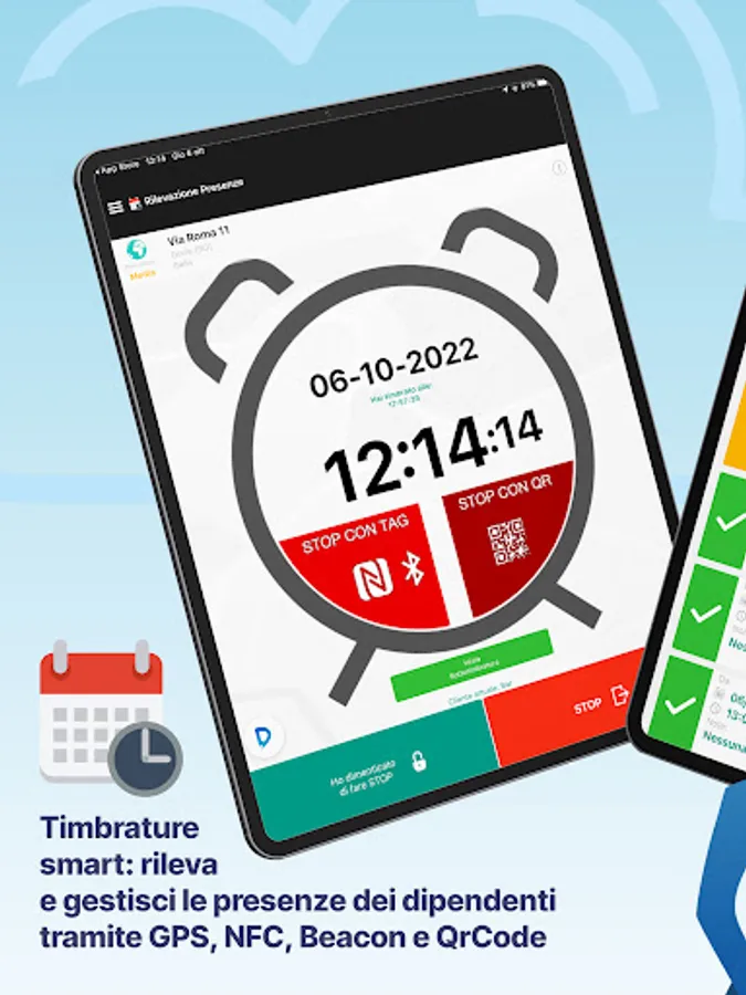 By entering the clock-in, the app sends the time and position to your administration panel.