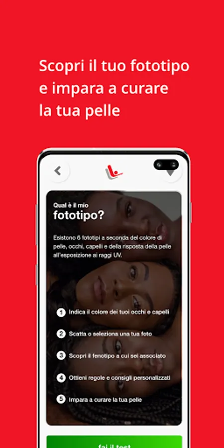 Discover your phototype: indicate the color of your eyes and hair, take or select a photo, discover the phototype you are associated with.